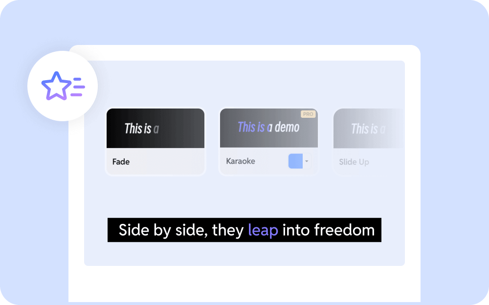 Bring your words to life with fades, bounces, and beat-synced highlights that command attention.